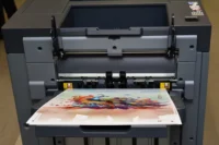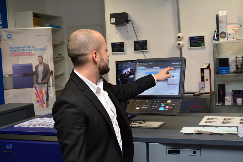 В процеса на съвременното дигитално отпечатване на изображения няма много междинни етапи, както е при аналоговия традиционен печат. Не са необходими специални мастила, плаки и сита. Съответно не е нужно да чакаме дълго за изработката. Процесът на дигитално печатане –  от принтиране на избрания файл до получаване на готовия изрязан и бигован релефен отпечатък – включва не повече от четири производствени етапа, които специалистите на Коника Минолта демонстрираха на живо в шоурума с модерните машини на компанията.