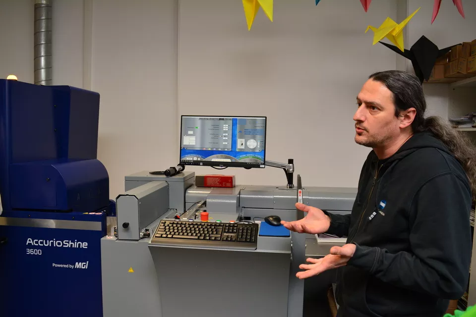 Ключов момент е обогатяването на печата – процес, който трансформира обикновения лист в изключително атрактивен и висококачествен печатен продукт. Това включва полагането на UV лак и фолио, които добавят стойност и осигуряват по-различно потребителско изживяване. В шоурума на Коника Минолта е изложен най-компактният представител от серията системи за облагородяване – AccurioShine 3600.